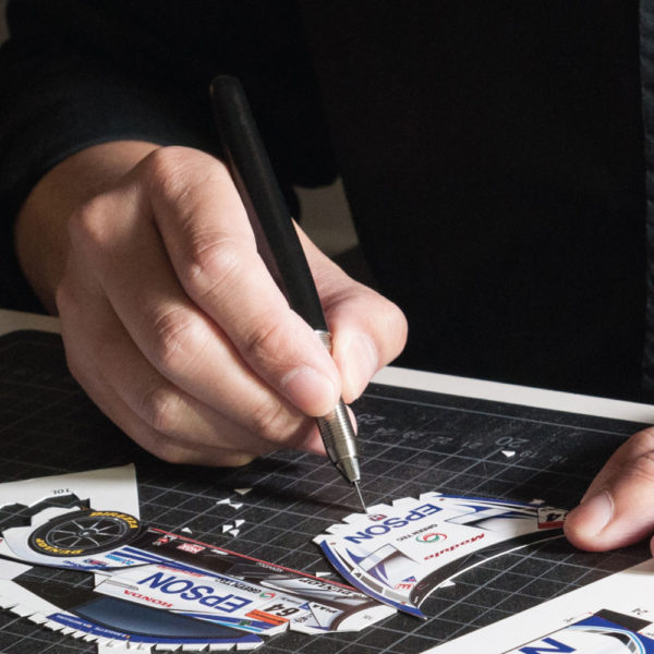 The set includes an art knife module. The module changes with the part with the ink, and then we have scissors on one side and a modeling blade for precision cuts on the other. The blades easily cut materials such as paper, fabric, leather, foil, rubber, wallpaper, linoleum, etc.