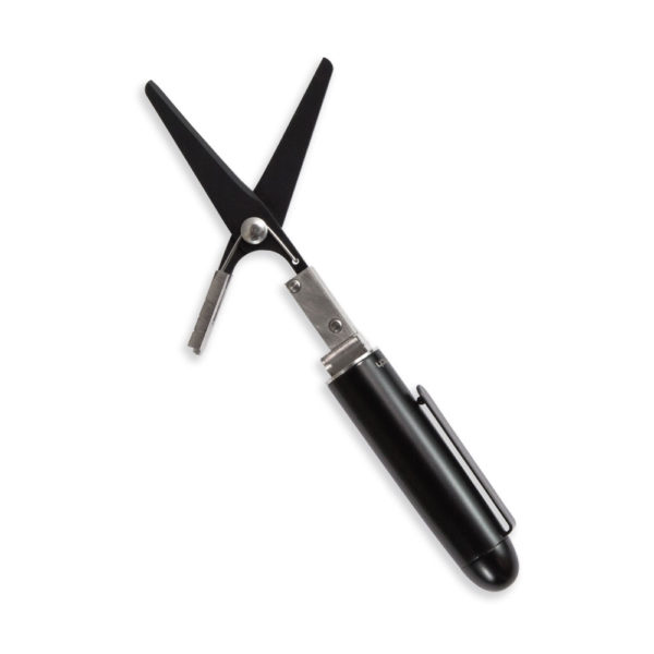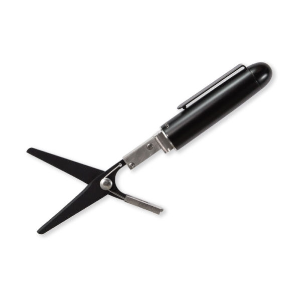 Xcissor Pen is ideal for carrying around instead of a regular pen for moments when you need to trim small things on the go. All you have to do is remove the barrel of pen, disengage the safety lock, and extend the scissors forward. It can cut through many materials such as paper, threads, cloths, leathers, wood chips… all normal duties with ease. The blades are made from SUS420 stainless steel, and either Nickel plated or Teflon coated** for added durability.