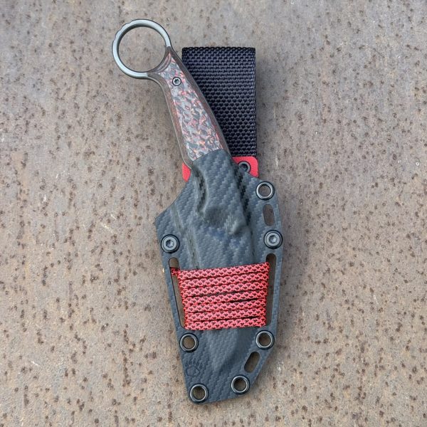 - Sheath: Black Holstex sheath with carbon pattern, red buckle and nylon belt
