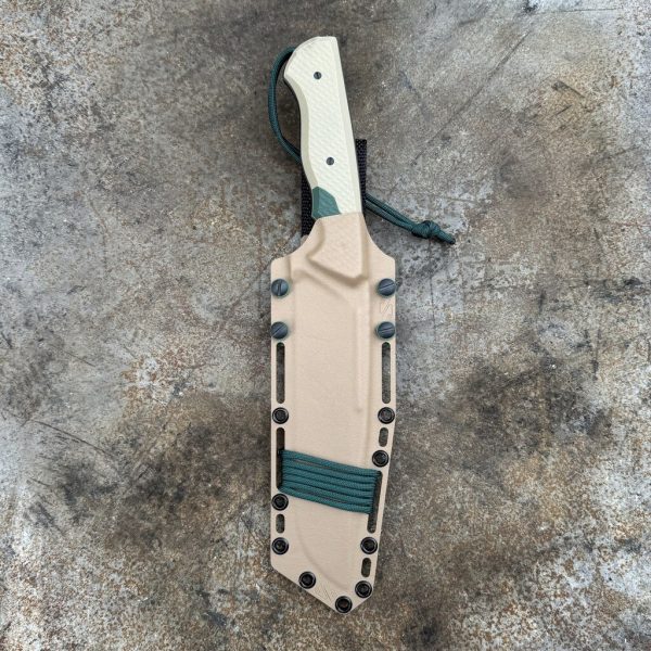 Easy Attachment Options: The holster conveniently attaches to your belt using a textile loop. Equipped with pass-through holes, it offers the flexibility to secure it to a backpack or tactical harness using cordage, paracord, or even a paracord section matching the knife’s design.