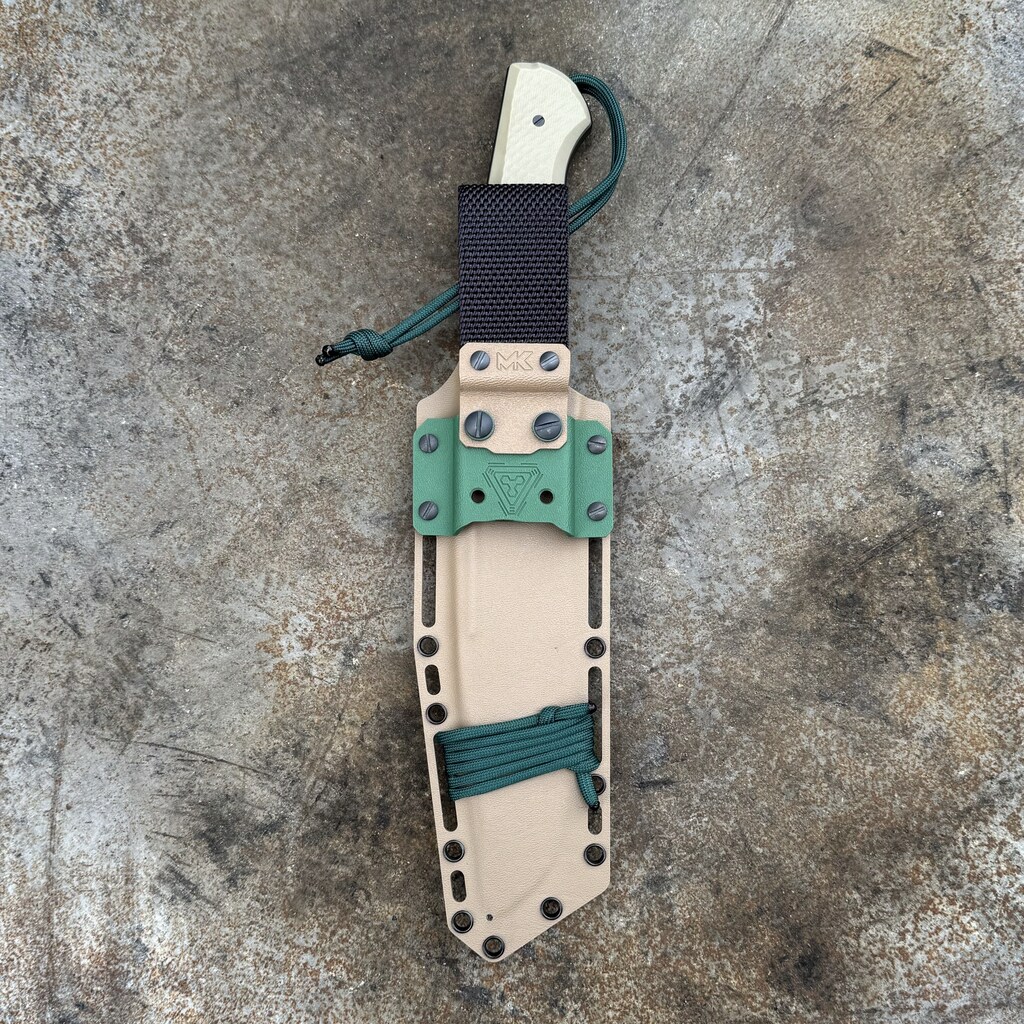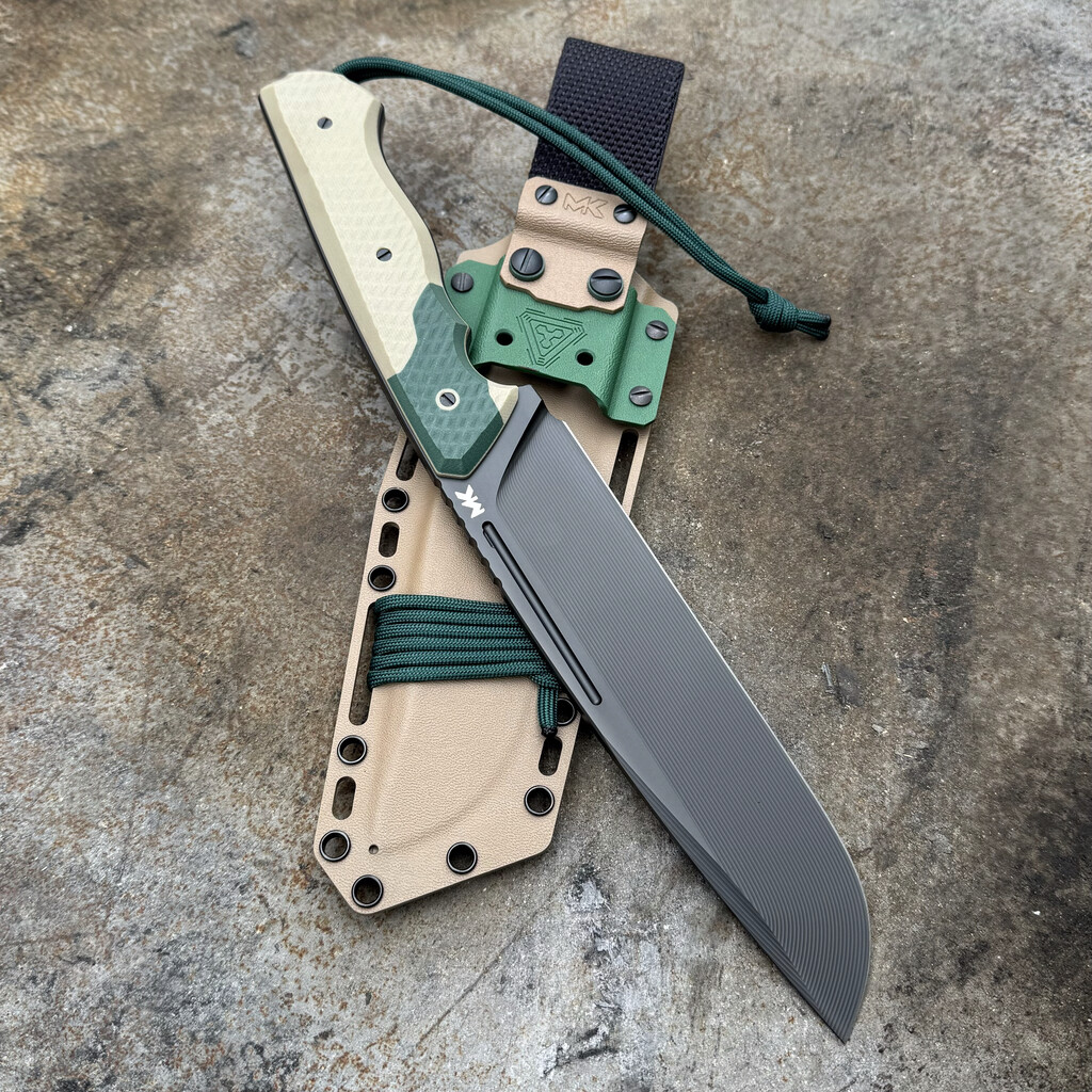 MK Knives & Tools Crowbar “FuturePunk” Black DLC Elmax Desert Tan/Green G10 Desert Tan Kydex