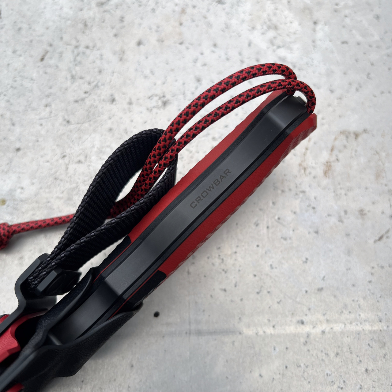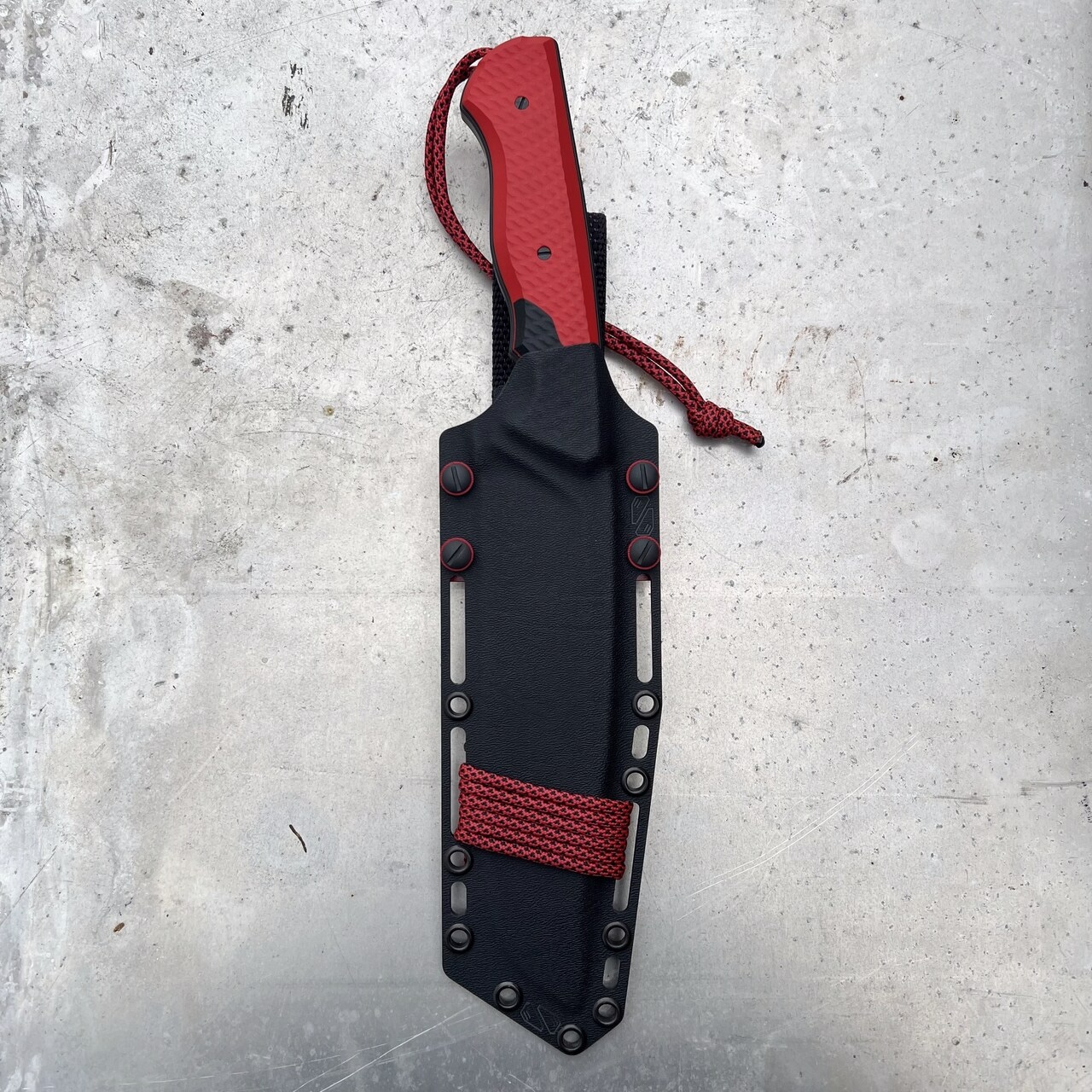- Handle: red G10 with black G10 spacers and inserts
