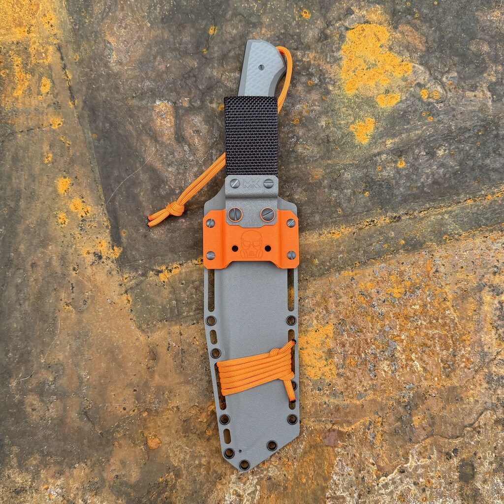 MK Knives & Tools Crowbar “Postapo” Black DLC Rigor Spine 8 Grey/Orange G10 Grey Kydex