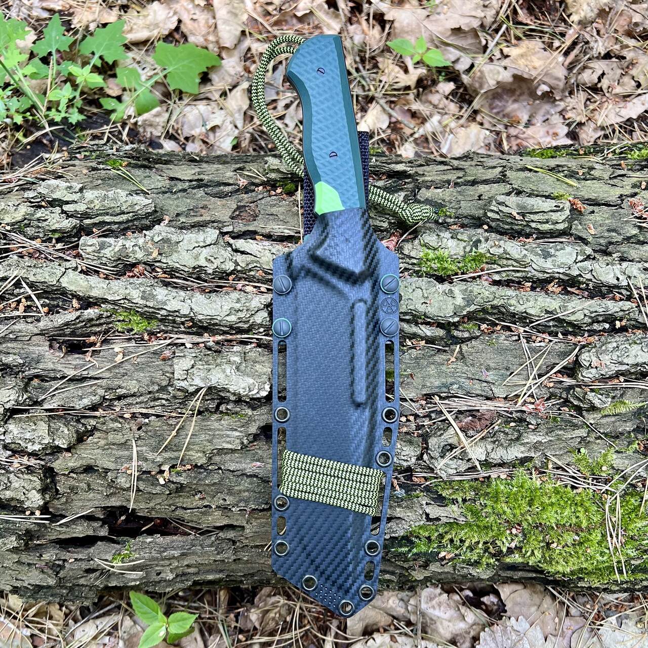 - Handle: green G10 + toxic green inserts