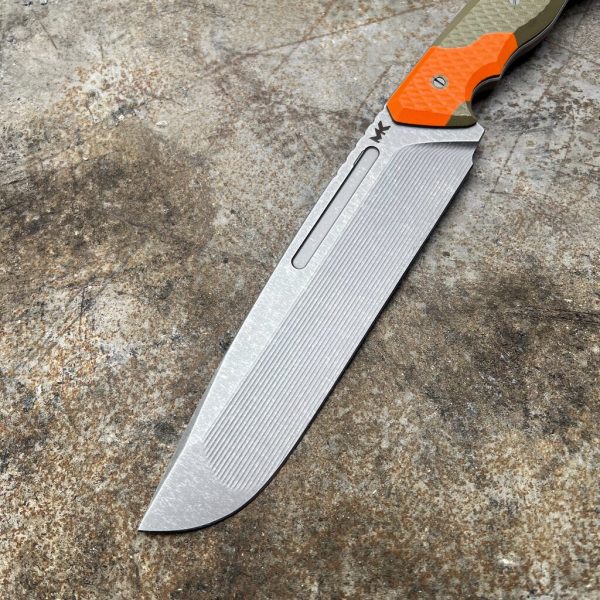 - Handle: olive G10 with orange G10 inserts