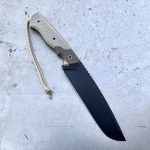 - Blade: fixed blade (full tang), drop point style blade with groove grind