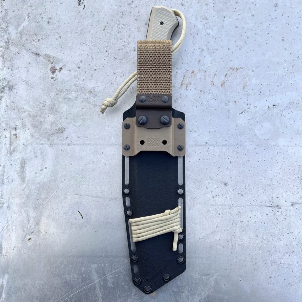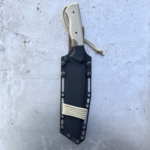 Easy Attachment Options: The holster conveniently attaches to your belt using a textile loop. Equipped with pass-through holes, it offers the flexibility to secure it to a backpack or tactical harness using cordage, paracord, or even a paracord section matching the knife’s design.