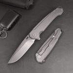 **TITANIUM FRAME**: The handle scales, backspacer, and clip are crafted from lightweight and extremely durable titanium, all assembled with Torx screws, including the pivot screw connecting the handle and blade. The backspacer includes a hole for attaching paracord, lanyards, or decorative accessories.