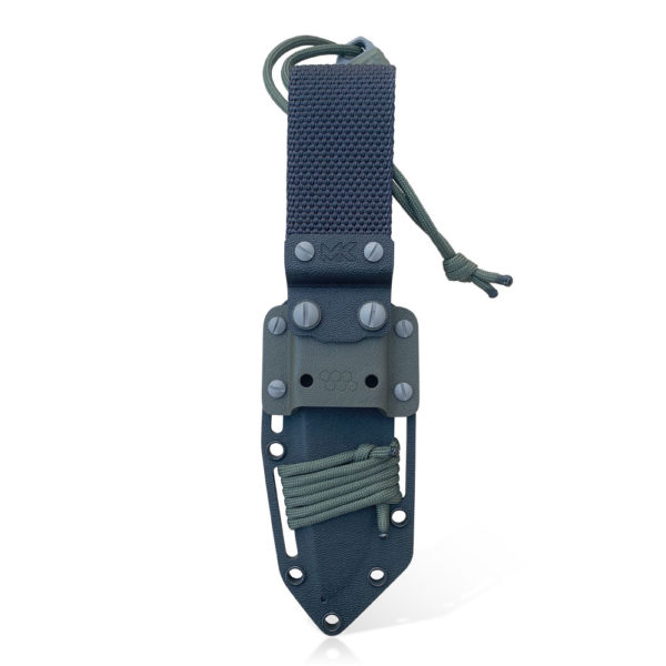 The knife has a holster made of hand-formed kydex material, which is characterized by high impact and scratch resistance, characterized by low moisture absorption, resistant to various weather conditions and many chemicals. In the presented model, the holster is made of black material.