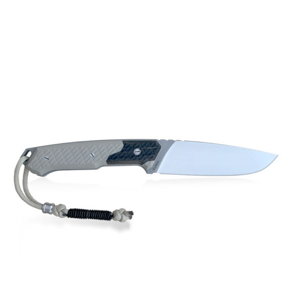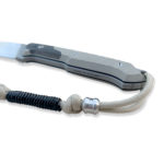 At the end of the knife handle there is a hole for attaching an additional cord, which can be used as a protection against dropping the knife during work, or an additional gripper that facilitates removing the knife from the holster. Originally, it includes a section of paracord with a shade matched to the design.