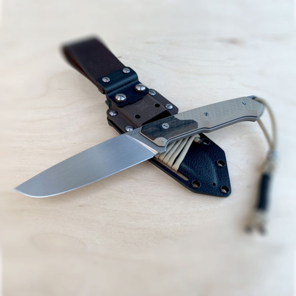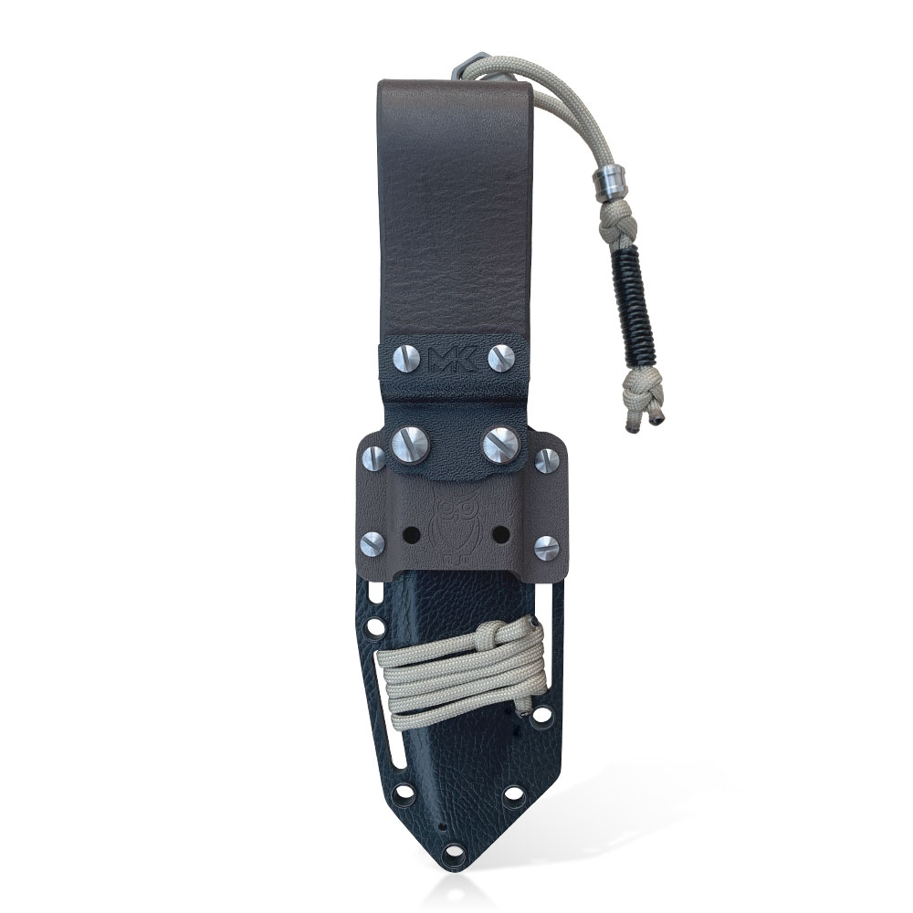 MK-01 Nomad is produced from different types of steel (Elmax, Vanadis 4 Extra, Vanadis 23 etc.), with different ways of finishing the blade (PVD coating, stonewash, satin). The handle is usually made of a G10 composite or micarta, with a variety of colors and different original patterns, including those created by filling the designed cavities with resin in a color also chosen by the knifemaker. For each model, the knifemaker forms a suitable holster from Kydex®, whose colours (holster and accessories) match those of the blade and handle to make a consistent set. The materials used decide on a more precise use of the knife. For example, models in black PVD with a Kydex® holster in dark colours will surely be of interest to those who prefer military-tactical solutions, considering also that all holsters can be mounted to the MOLLE® system, harness components or tactical backpack.