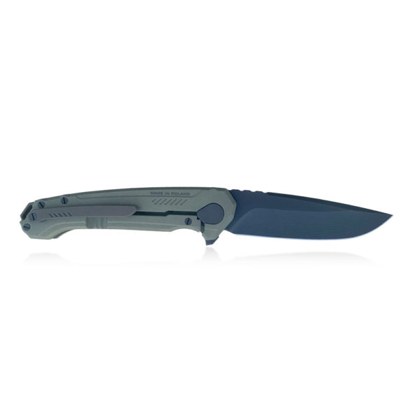 The handle is entirely made of light and extremely durable titanium. It is a hard metal, resistant to impact and mechanical damage, used in knives of the highest quality. It is resistant to corrosion. The covers have been screwed with stainless steel screws in a color consistent with the entire design (PVD coating). The knife is equipped with a titanium pocket clip, allowing for stable carrying in a pocket, mounting in a backpack, organizer, kidney, etc. The knife has titanium backspacer with a hole designed for threading an additional line, paracord, etc. Both the clip and the hole are elements that protect against possible knife loss. The hole can also be used to attach an additional ornament in the form of a knife bead etc. MK knife beads you can find HERE.