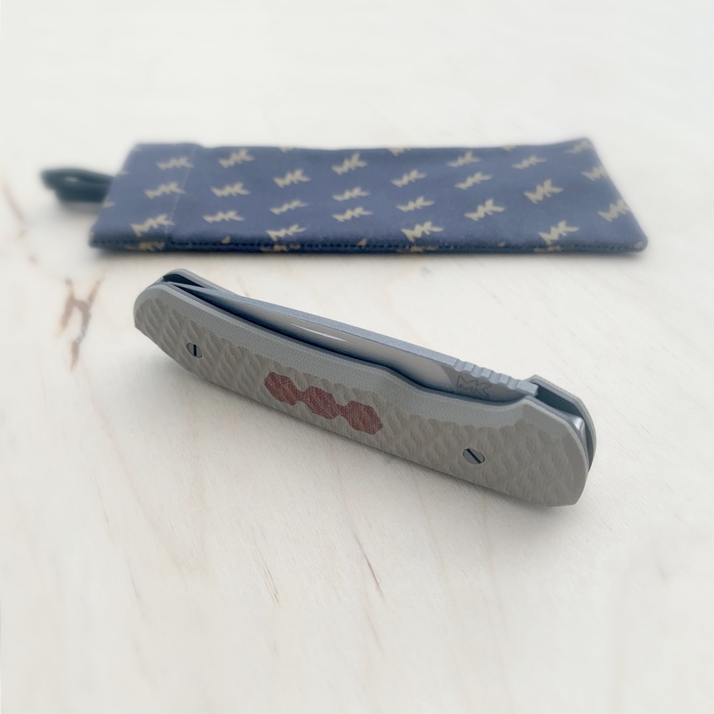 Humbler folding knife comes with a fabric pouch with the MK logo. The velcro closure cover is used to store or carry the knife, depending on the needs and preferences of the user.