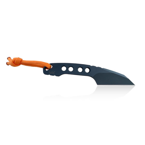 Small in size, but big in possibilities! Effective wharncliffe blade made of excellent Vanadis 4 Extra steel, this time with a thickness of 5 mm and a black titanium coating (PVD). In addition, a thoughtful, two-color – combined black and orange kydex holster. The buckle features an insert with the MK logo for the first time, which certainly diversifies the design. The holster can be carried vertically or horizontally on the belt, and with the option of carrying it on the neck (neck knife). A neat whole closed in a beautiful design, made in the unusual, meticulous style of MK Knives & Tools.