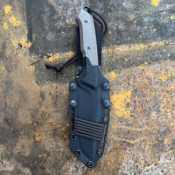 MK Knives & Tools Nomad “Brack” knife comes with premium Elmax steel in DLC coating. The blade comes with groove grind (GG / hollow) which improves cutting properties. The handle is made of Earh Brown G10 composite with black inserts. Knife comes with black Kydex sheath with colour additions.