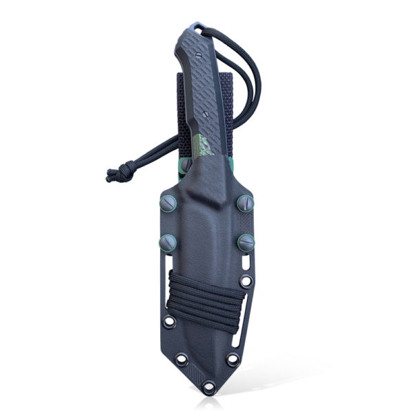 At the end of the knife handle there is a hole for attaching an additional wire, which can serve as a protection against dropping the knife during operation, or an additional gripper to facilitate the removal of the knife from the holster. Originally, it includes a paracord section with a shade matching the design.