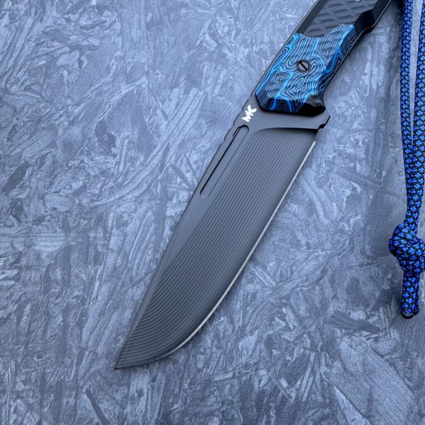 - Handle: black G10 plus Blue Turtle G10 inserts