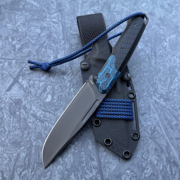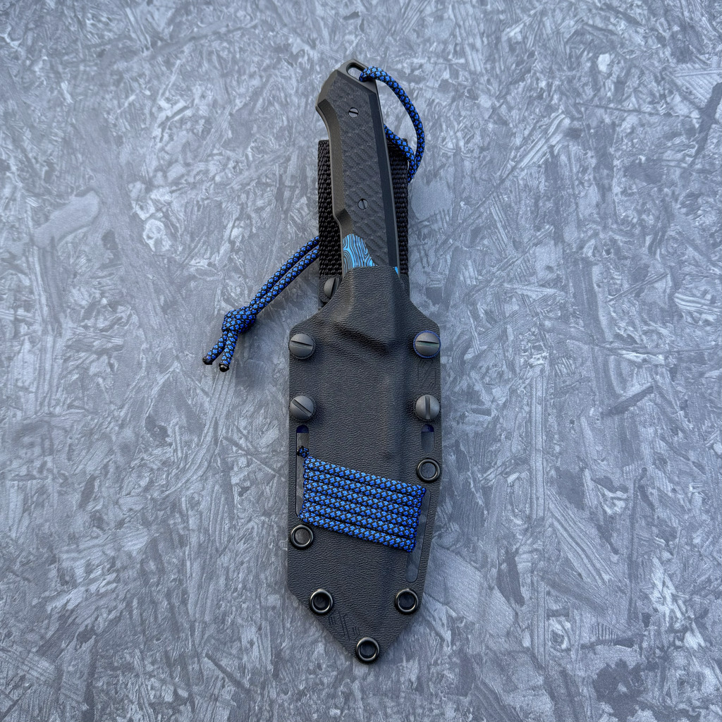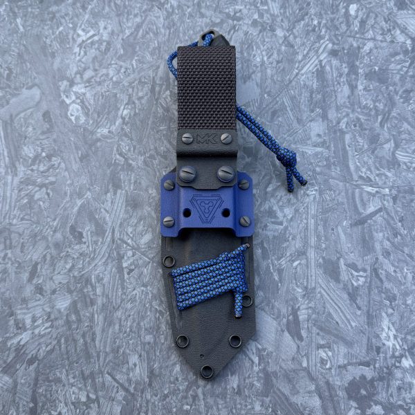 - Sheath: black Kydex plus blue additions