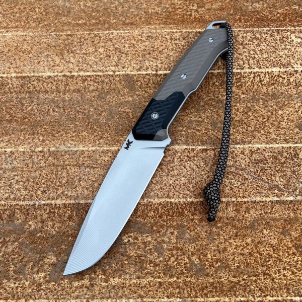 - Blade: fixed blade (full tang), drop point style with groove grind (GG / hollow), plain cutting edge