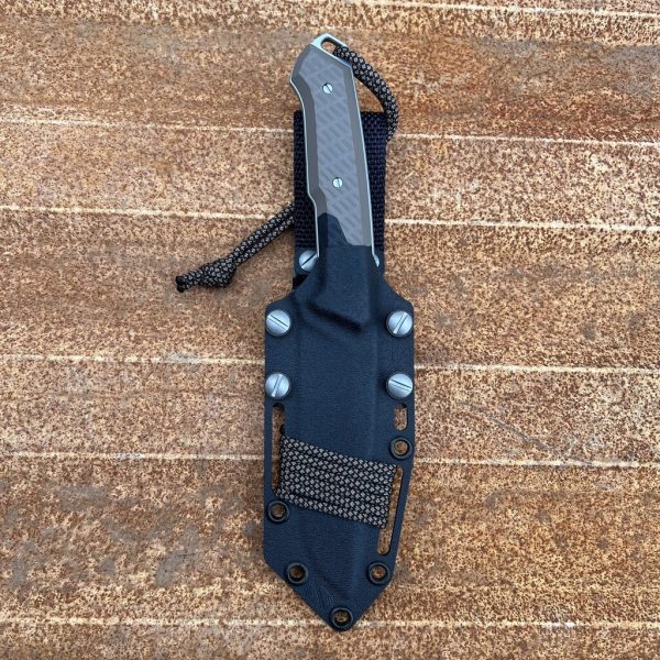 Nomad knife is produced from different types of steel (Vanax, Elmax, Vanadis 4 Extra, Vanadis 23 etc.), with different ways of finishing the blade (PVD coating, DLC coating, glassblasted finish, stonewash finish, satin etc.). The handle is made of various type of materials: G10 composite, micarta, carbon fiber and so on with a variety of colors and different original patterns,precisely choosed by knifemaker. For each model, the knifemaker forms a suitable holster from Kydex (or another material), whose colours (holster and accessories) match those of the blade and handle to make a consistent set. The materials used decide on a more precise use of the knife. For example, models in black PVD or DLC with a Kydex holster in dark colours will surely be of interest to those who prefer military-tactical solutions, considering also that all holsters can be mounted to the MOLLE system, harness components or tactical backpack.