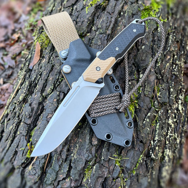 Nomad knife is produced from different types of steel (Vanax, Elmax, Vanadis 4 Extra, Vanadis 23 etc.), with different ways of finishing the blade (PVD coating, DLC coating, glassblasted finish, stonewash finish, satin etc.). The handle is made of various type of materials: G10 composite, micarta, carbon fiber and so on with a variety of colors and different original patterns,precisely choosed by knifemaker. For each model, the knifemaker forms a suitable holster from Kydex (or another material), whose colours (holster and accessories) match those of the blade and handle to make a consistent set. The materials used decide on a more precise use of the knife. For example, models in black PVD or DLC with a Kydex holster in dark colours will surely be of interest to those who prefer military-tactical solutions, considering also that all holsters can be mounted to the MOLLE system, harness components or tactical backpack.
