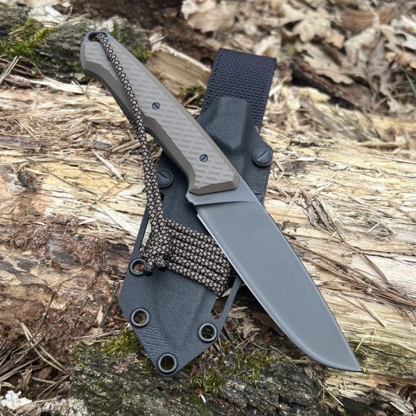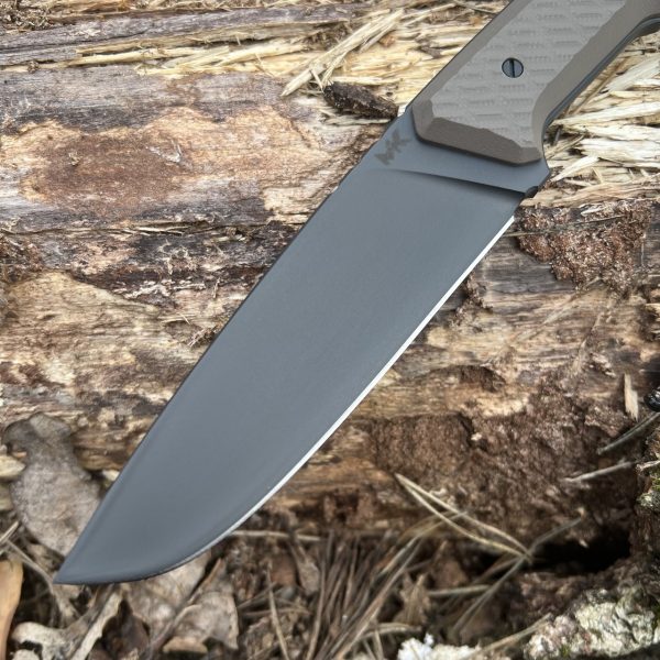 - Blade: fixed blade (full tang), drop point style with full flat grind (FFG), plain cutting edge