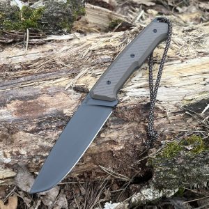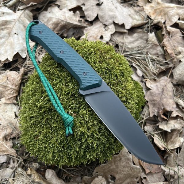 - Blade: fixed blade (full tang), drop point style with full flat grind (FFG), plain cutting edge