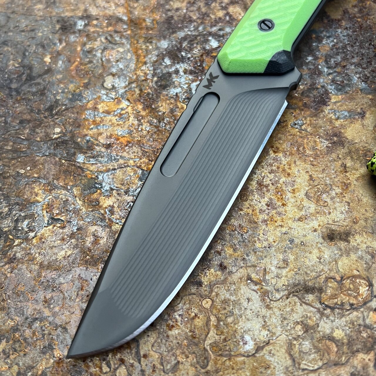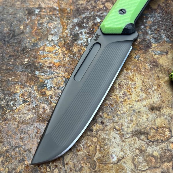 - Handle: black G10 base plus Toxic Green inserts