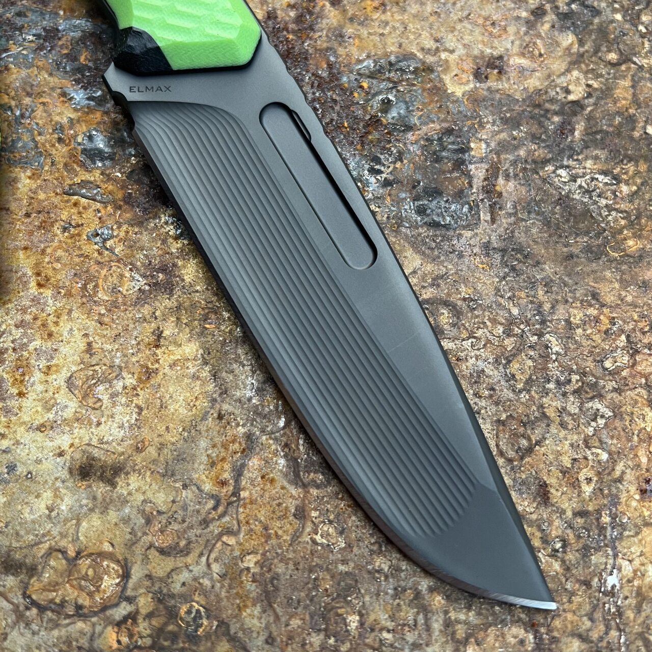 - Steel: Elmax (60-61 HRC), black DLC