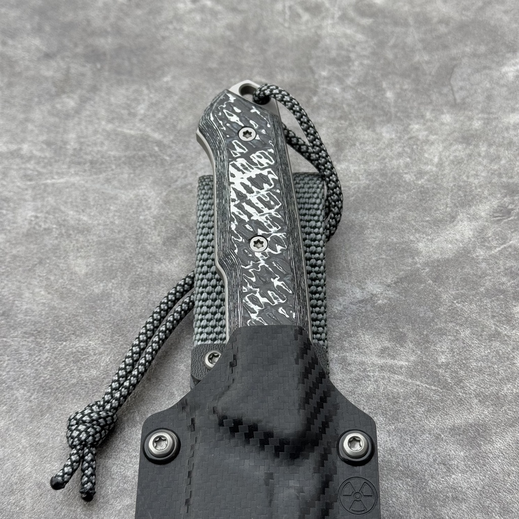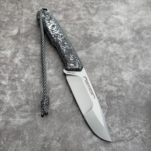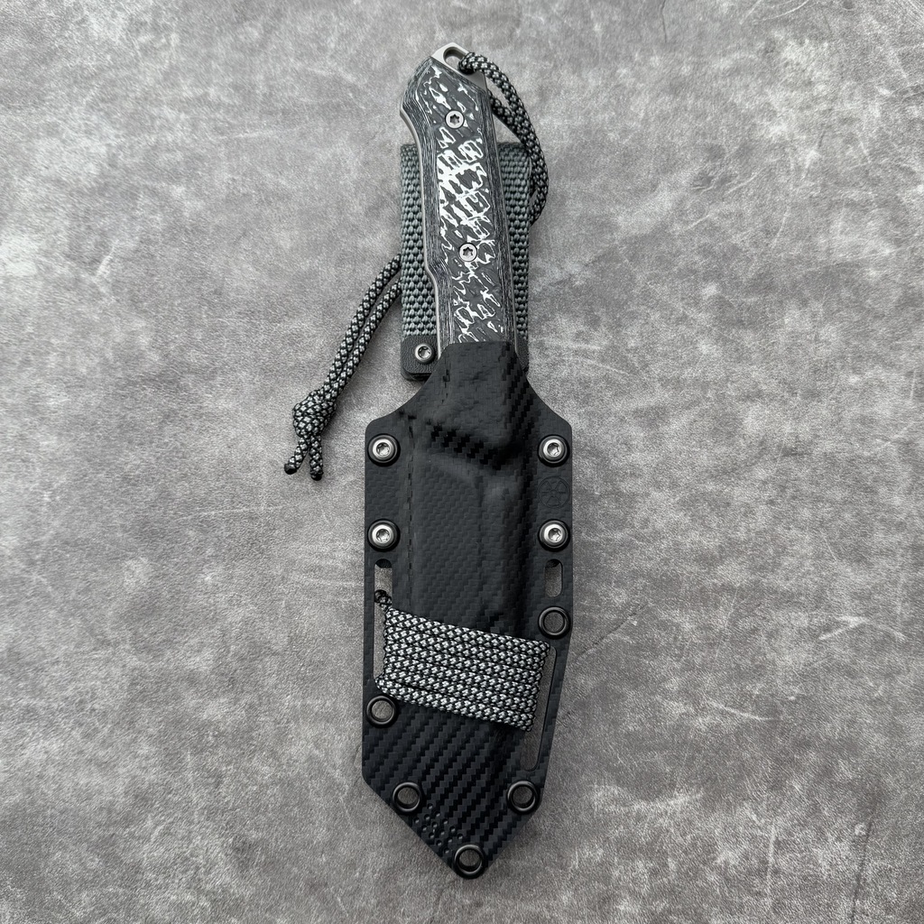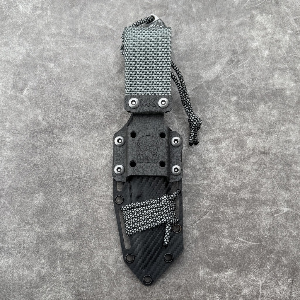 MK Knives & Tools Nomad “Postapo” Glass Blasted MagnaCut Double Grind White Storm FatCarbon/Black G10 Black Carbon Holstex