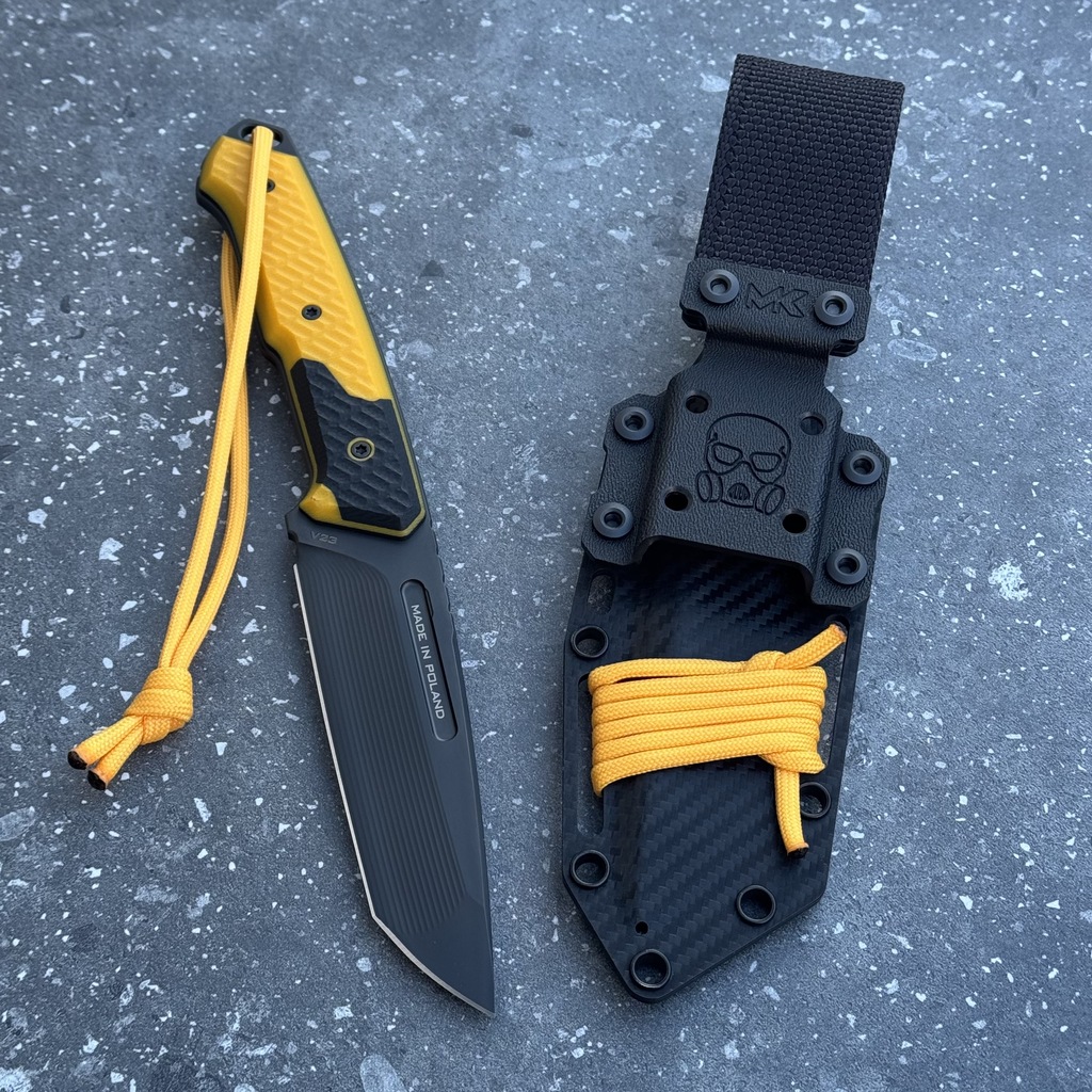 MK Knives & Tools Nomad Tanto “Postapo Bumblebee” DLC Vanadis 23 Yellow/Black G10 Black Carbon Holstex