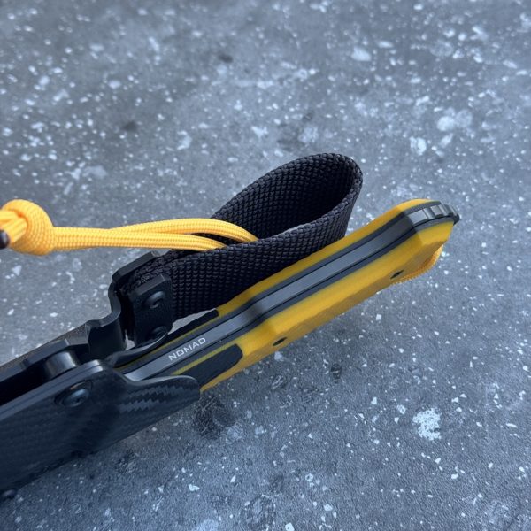 The Nomad knife is produced from various types of steel (Elmax, Vanax, Vanadis 4 Extra, Vanadis 23, etc.) with different blade finish methods (PVD coatings, DLC, acid-etched, stonewash, satin). The handle is crafted from G10 composite, micarta, carbon fiber (carbon, FatCarbon) with diverse colors and unique patterns meticulously selected by the knifemaker.