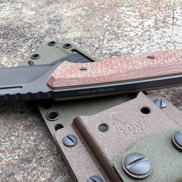 - The presented version, produced since July 2021, is a variant with steel tubes attaching micarta linings to the knife handle.