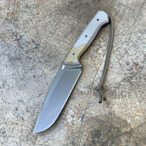 - Blade: fixed blade (full tang), drop point style blade with groove grind, plain cutting edge
