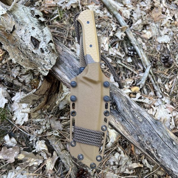 Presented knife has a DLC coated blade made of Elmax premium steel and Coyote & Earth Brown G10 handle. Knife comes with Coyote Kydex holster.