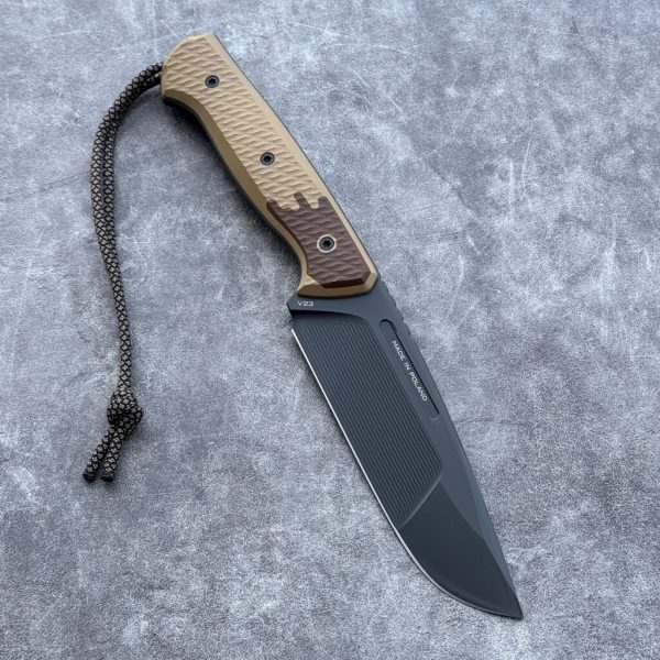 **STRONG STEEL**: Presented knife is made of one piece of Vanadis 23 tool steel. The steel used in the knife is an extremely durable material, very hard, resistant to overload, abrasion and chipping.