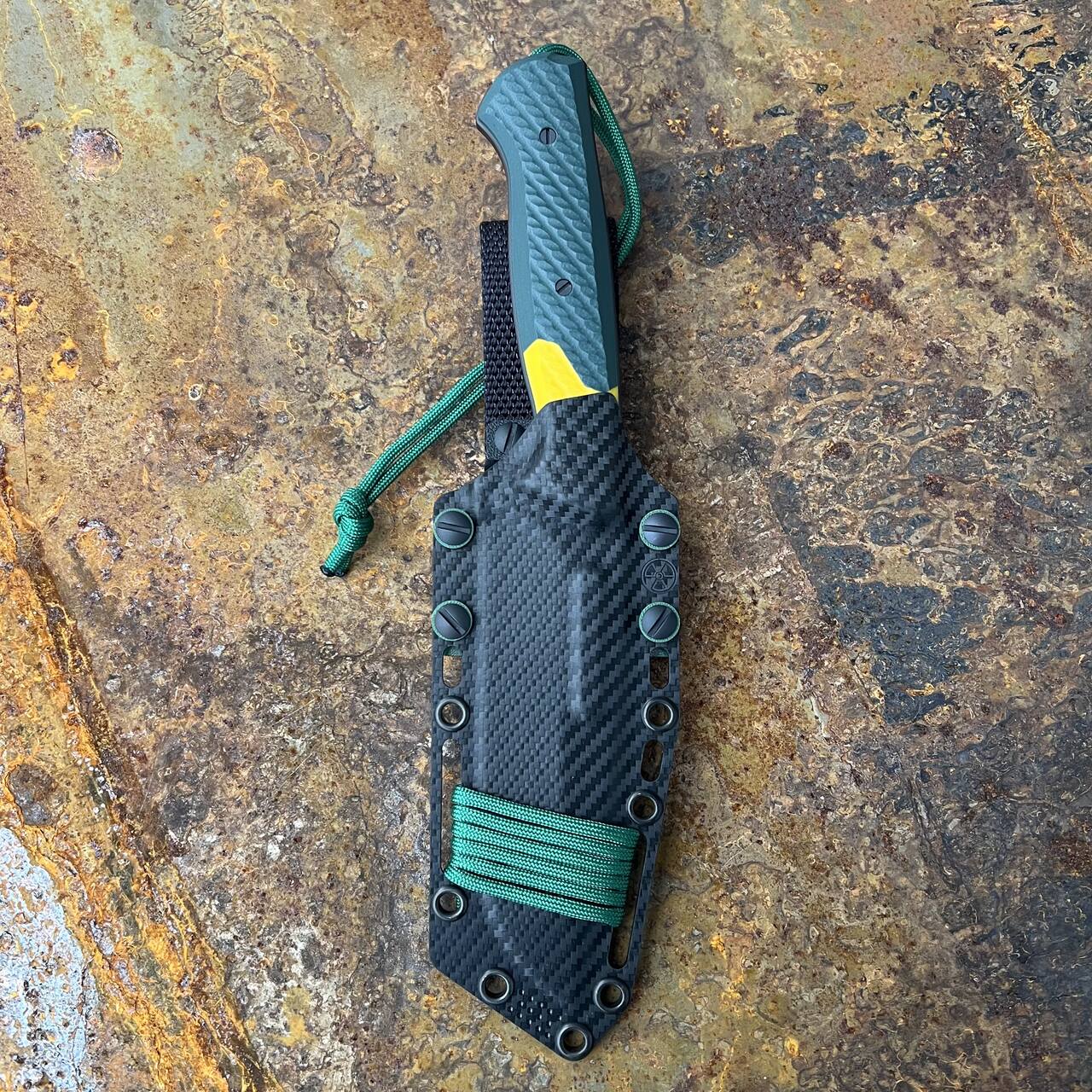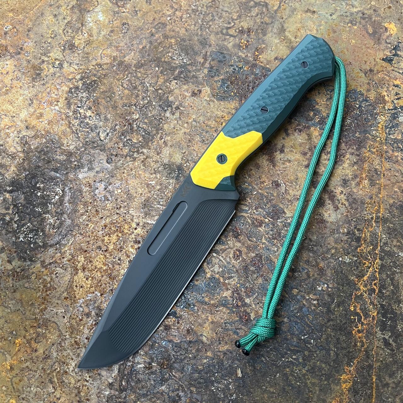- Handle: dark green & yellow G10
