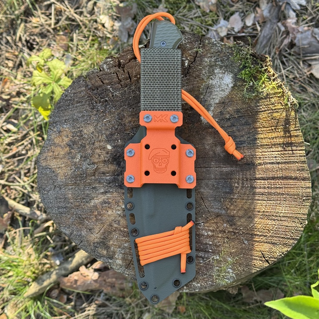 MK Knives & Tools Rambler “Postapo” Stonewash Elmax OD Green/Orange G10 Black Carbon Kydex