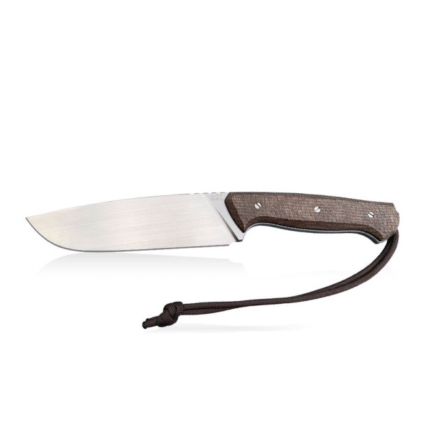 Rambler “Sylvan” is a knife in the shades of the old forest. An array of shades of brown: darker (micarta), lighter (kydex: coyote), black (G10 spacers), gray (glassblasted screws and the spine of the blade) perfectly harmonize with the horizontal satin silvering in the sun, carefully pampered by hand on the blade.