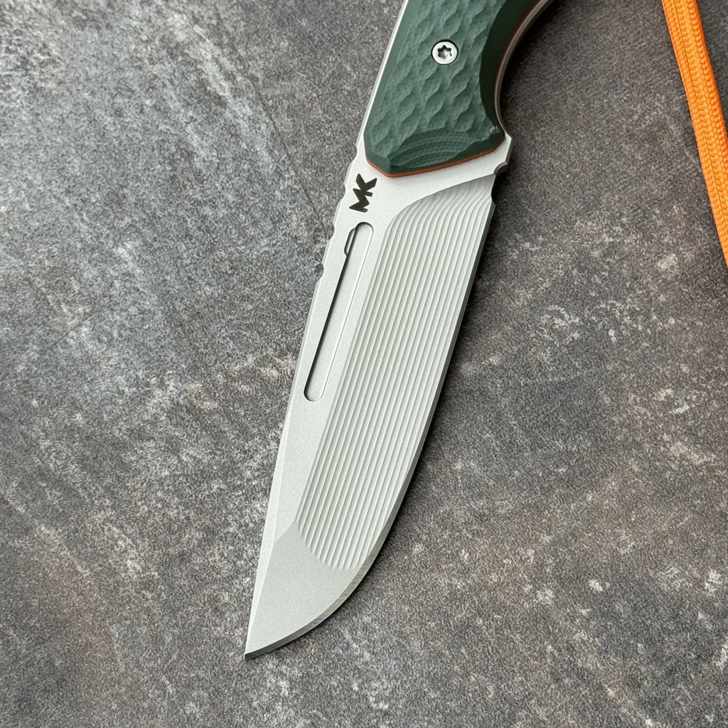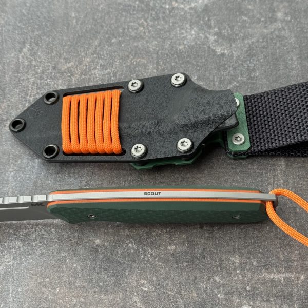 MK Knives & Tools Scout “Fear The Bear” Glass Blasted Elmax Green G10 with Orange Liners Black Kydex