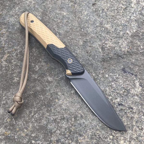 - Blade: fixed (full tang), drop point profile with hollw grind (GG – Groove Grind), plain cutting edge