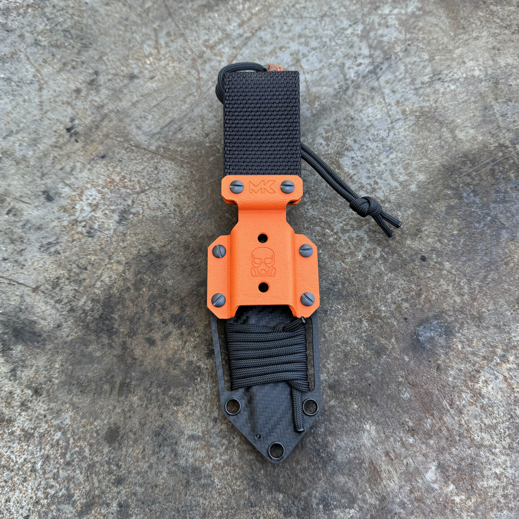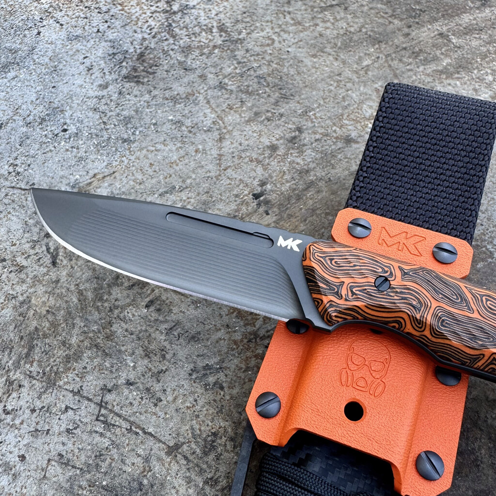 MK Knives & Tools Scout “Postapo” Black DLC Vanadis 4 Extra Orange Turtle G10 Carbon Holstex