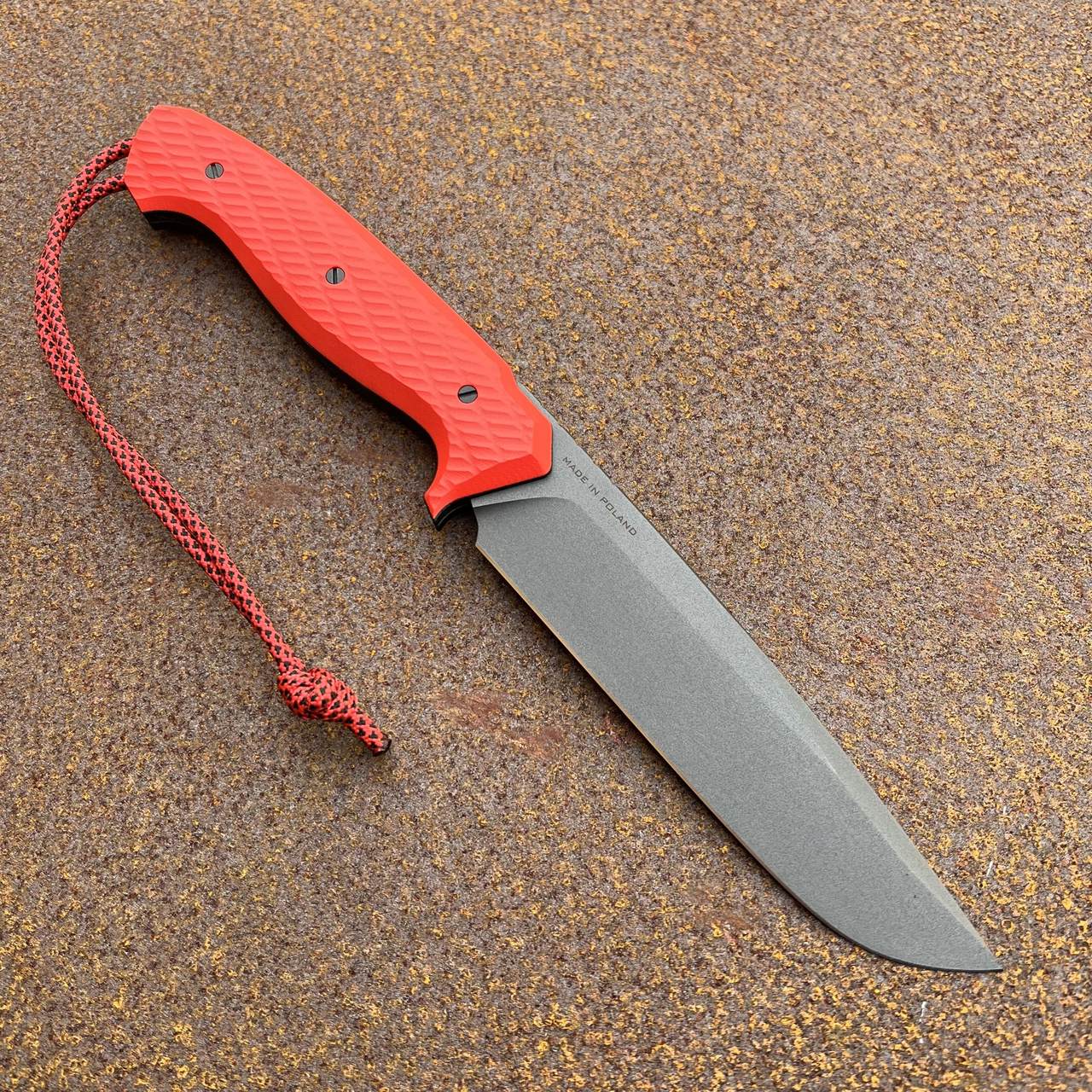 At the end of the knife handle there is a pin for attaching an additional cord, which can be used as a protection against dropping the knife during work, or an additional gripper that facilitates removing the knife from the holster. This solution also allows you to protect the knife against loss. Originally, a section of paracord with a shade matched to the design was attached to the knife.