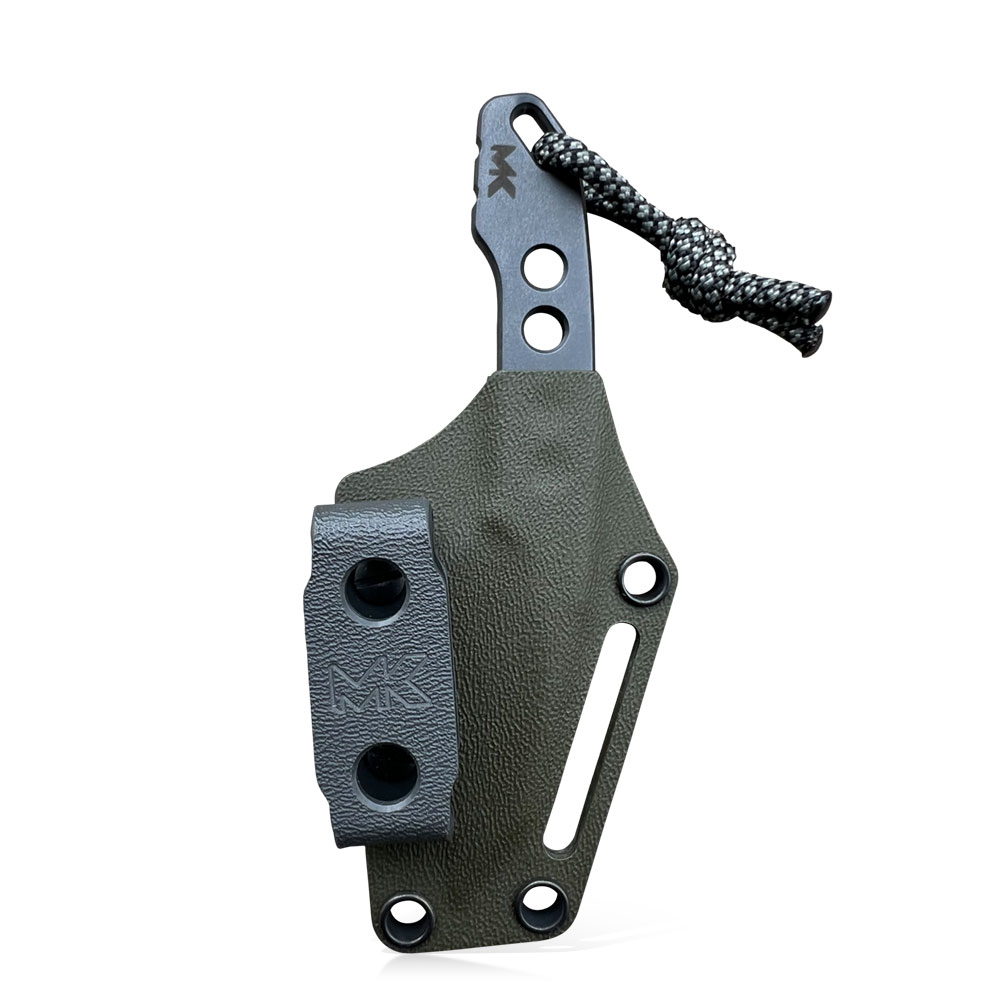 MK Knives & Tools Spike “Green” | Vanadis 4 Extra | PVD has a blade with an innovative hollow grind (characteristic grooves on the blade), and green kydex sheath with black kydex buckle which allows to assemble set on Molle type solutions.