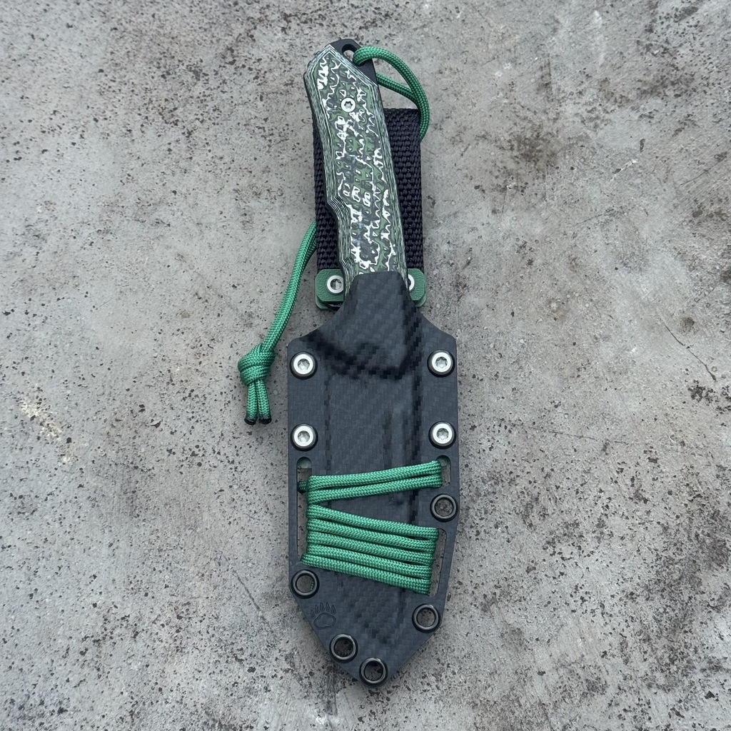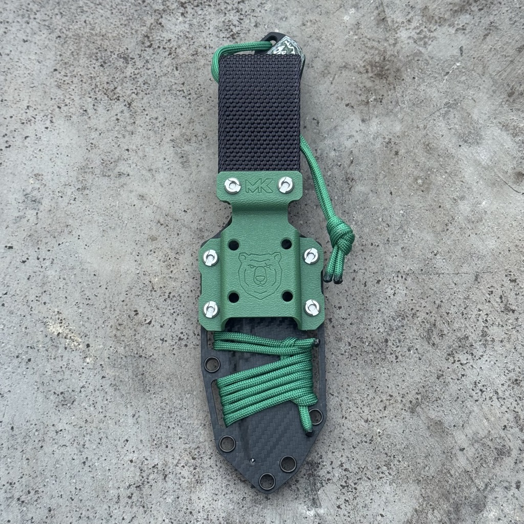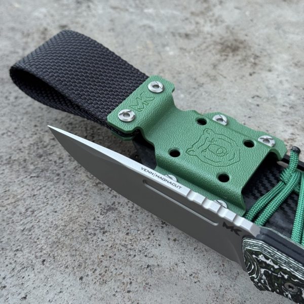 MK Knives & Tools Venn ‘Fear The Bear’ Bead Blasted MagnaCut Pines Peak FatCarbon/Black G10 Liners Black Carbon Holstex