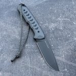 **Presented Vann features a blade made of Vanadis 23 steel with black DLC coating. The blade features hollow groove grind (GG) with flat grind tip for better penetrating properties.