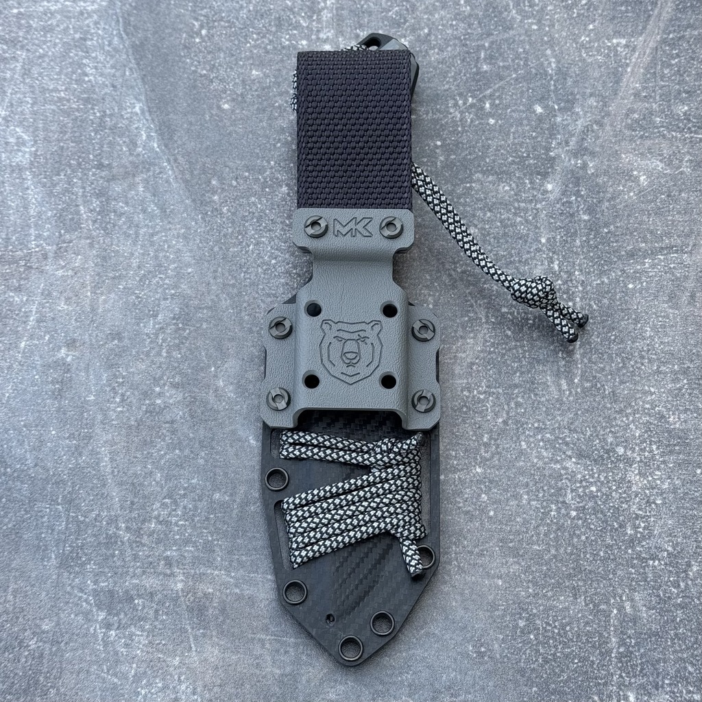 MK Knives & Tools Venn ‘Fear The Bear’ DLC Vanadis 23 Charcoal Gray G10/Marbled Carbon Inserts Black Carbon Holstex