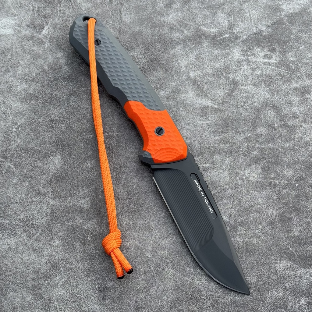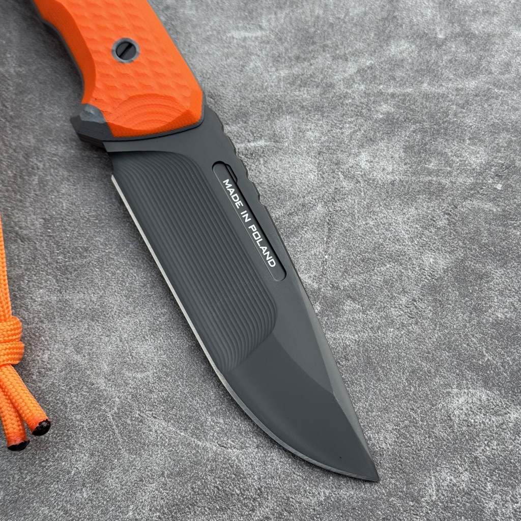 - Handle: Charcoal Grey G10 + Orange G10 inserts