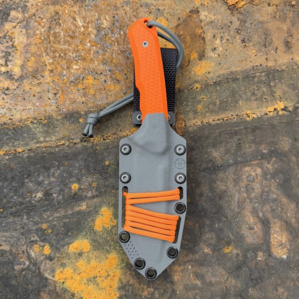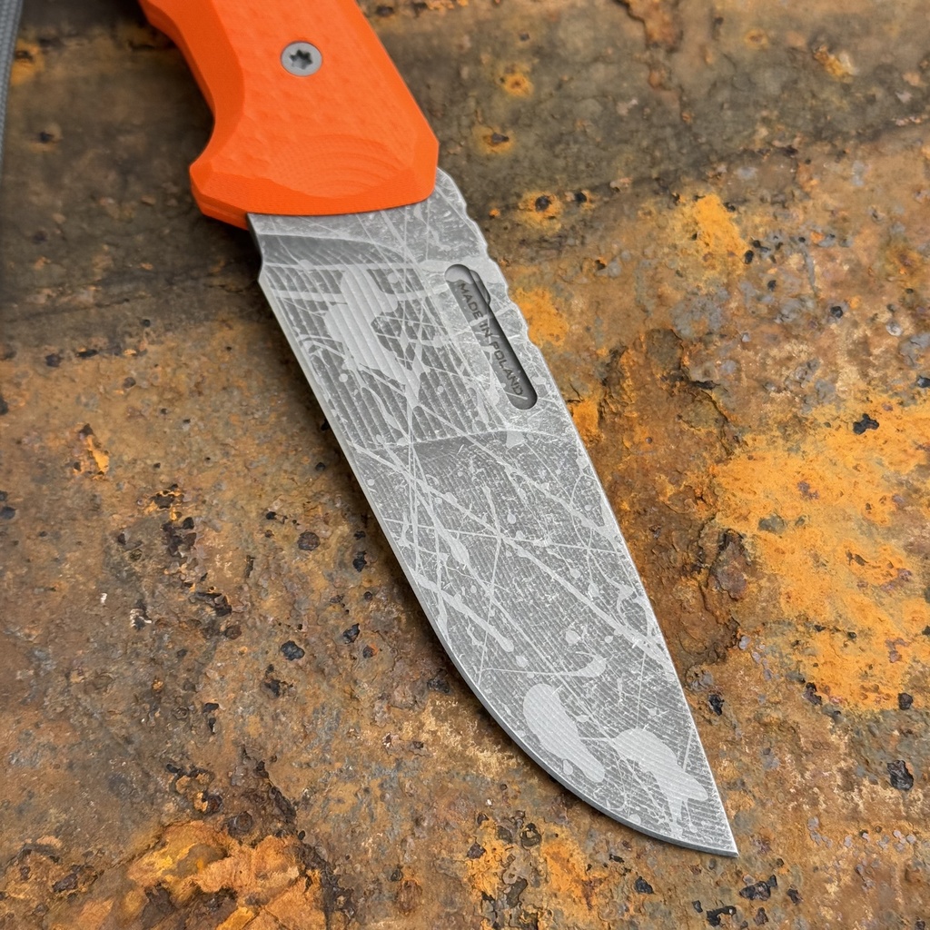 MK Knives & Tools Venn ‘Postapo Zombie Blood’ 10th Anniversary Logo Acid Stonewash Becut Orange G10 Grey Kydex