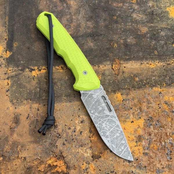 MK Knives & Tools Venn ‘Postapo Zombie Blood’ 10th Anniversary Logo Acid Stonewash Becut Toxic Green G10 Grey Kydex